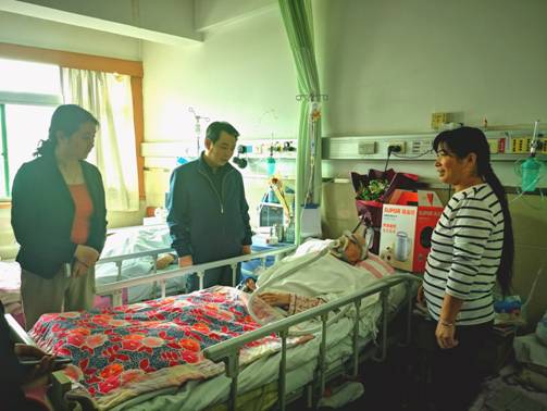 10月17日上午,中心黨委書記、總經(jīng)理吳宏利一行前往市中心醫(yī)院病房看望慰問原五公司99歲離休干部馮秀栓,吳總親切地握著老人的手,向其子女詳細詢問老人的生活狀況和健康情況,并為老人送上了鮮花和慰問品,祝愿他早日康復,老人的子女對集團公司的關(guān)心表示由衷的感謝。