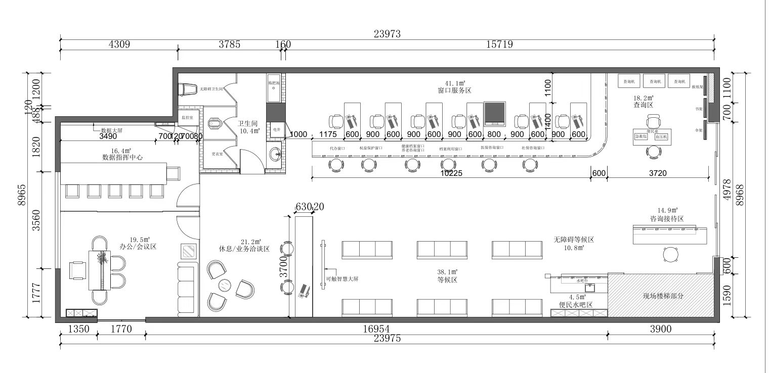 3、項(xiàng)目概況:西安建工職工服務(wù)中心有限責(zé)任公司擬將建工路中坤廣場(chǎng)A區(qū)6號(hào)樓一樓西安市國有企業(yè)退休人員服務(wù)大廳內(nèi)部局部改造,服務(wù)大廳面積為270㎡,包括服務(wù)前臺(tái)、洽談區(qū)、數(shù)據(jù)中心等。現(xiàn)擬在保障服務(wù)大廳現(xiàn)有基本窗口功能分區(qū)的基礎(chǔ)上,劃設(shè)出約90㎡-120㎡作為后期幸福之路大藥房搬遷至服務(wù)大廳日常經(jīng)營區(qū)域。本次詢價(jià)為西安市國有企業(yè)退休人員服務(wù)大廳局部改造。